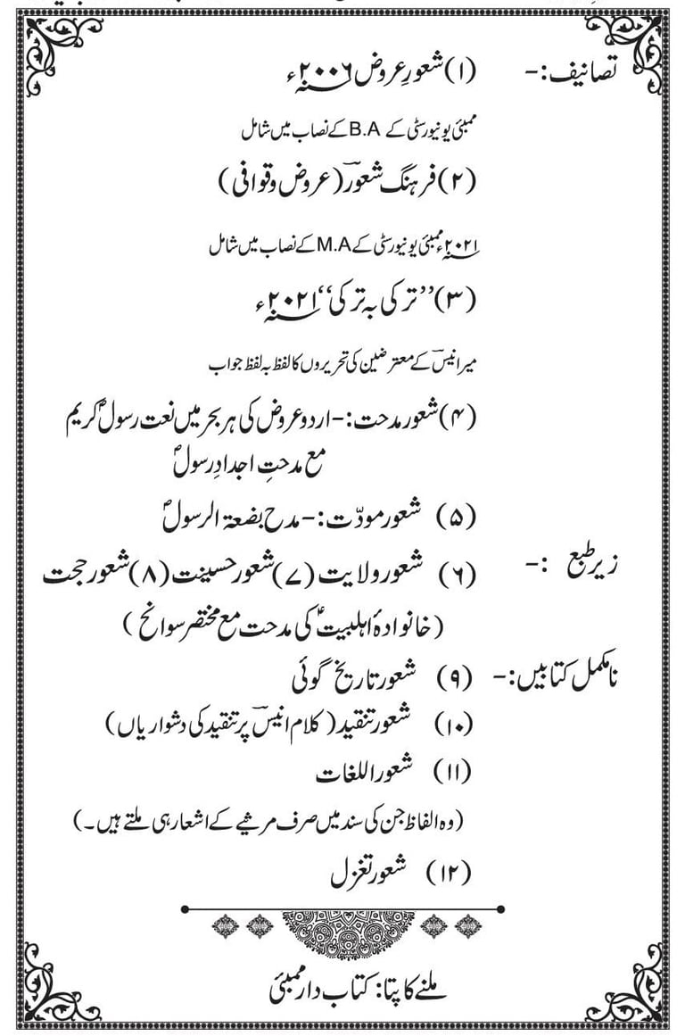 آپ کے سلام ، نوحے ، قصیدے، غزلوں اور عروض کی متعدد کتابیں بھی منظرِ عام پر آ چکی ہیں